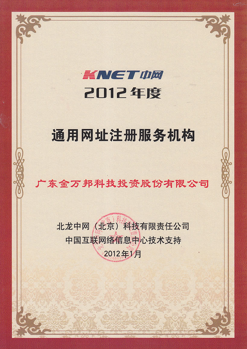 2012年度榮譽(yù)資質(zhì)